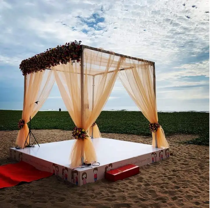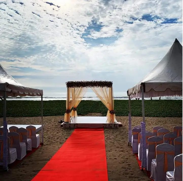 The Blue House offers private beach weddings right outside our gates for the dream wedding ceremony. It can accomodate 500 guests and is right outside the gates of Blue House. We cater all services such as bridal make-up, mehandi, catering, decoration, We tailor our services depending on our customer's needs.